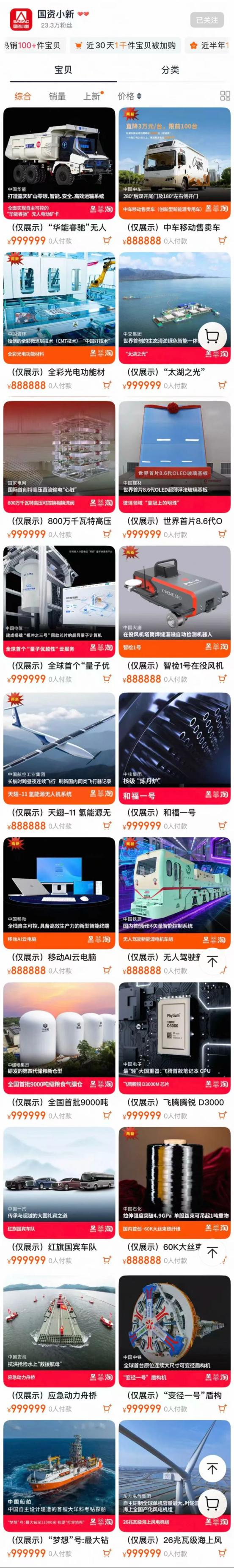细心的朋友们可能已经发明,今年“国资小新”淘宝店肆上新的诸多大国重器中,既有标价999999的尖端“硬货”、“无价之宝”,寓意自立自强的底气;