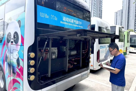 为践行成都世运会绿色低碳办赛理念,这批氢能公交车通过“氢”和“氧”的电化学反应爆发电能从而驱动车辆,全程只爆发水,真正实现零排放。
