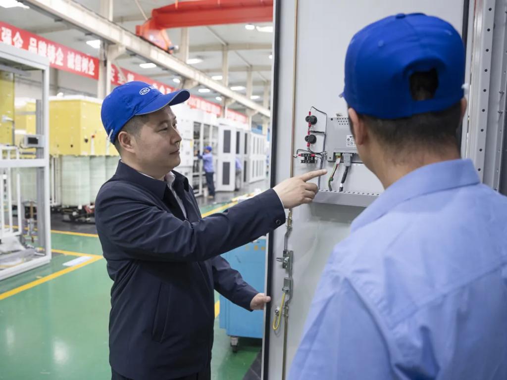 正是赖成毅和团队的坚持和严谨 ,今年6月 ,22兆伏安水冷型高压变频器完成第三方型式试验。7月 ,通过了中国机械联合组织的专家见证试验和设备出厂鉴定。
