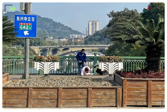 当途经簸米湾大桥时,他注意到,一名女孩正坐在大桥中央的护栏上,面向釜溪河,身体摇摇欲坠,似乎有轻生的念头 。