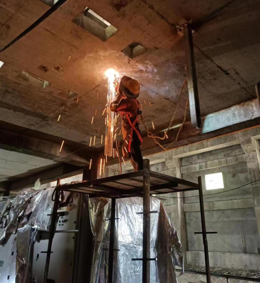 ◆东方国际尼泊尔山涧水电项目职工正在进行电缆桥架装置事情