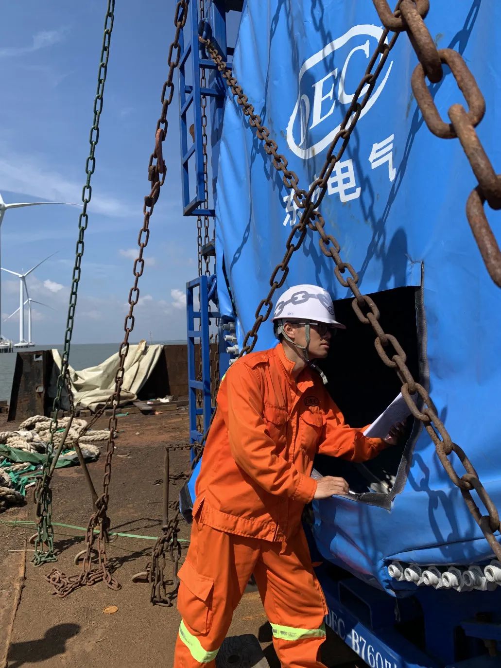 ◆东方国际职工正在核对越南长海3期海上风电项目相关数据,协调风机吊装事情
