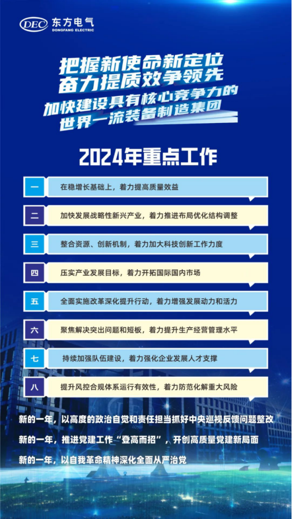 ÓáÅà¸ùÖ¸³ö£¬2024ÄêÊÇÂäʵ¡°ÁìÏÈÕ½ÂÔ¡±ºÍ¡°11256¡±Éú³¤Õ½ÂÔ£¬Íƽø¼¯ÍŹ«Ë¾×ªÐÍÉú³¤µÄÒªº¦Ö®Ä꣬×öºÃÈ«ÄêµÄÊÂÇéÓÈÎªÖØÒª¡£È«¼¯ÍÅÒª¼á³ÖÒÔϰ½üƽÐÂʱ´úÖйúÌØÉ«Éç»áÖ÷Òå˼ÏëΪָµ¼£¬È«Ãæ¹á³¹Âäʵµ³µÄ¶þÊ®´óºÍ¶þÊ®½ì¶þÖÐÈ«»á¡¢ÖÐÑë¾¼ÃÊÂÇ鼯»á¾«Éñ£¬ÉîÈë¹á³¹Âäʵϰ½üƽ×ÜÊé¼Ç¹ØÓÚ¹úÓÐÆóÒµ¸ïÐÂÉú³¤ºÍµ³µÄ½¨ÉèÖØÒªÂÛÊö£¬ÈÏÕæ¹á³¹Âäʵϰ½üƽ×ÜÊé¼Ç¡°ºëÑï¿É¹óµÄ¡®¶«Æû¾«Éñ¡¯¡±¡°×öÅÅÍ·±ø¡¢×ßÔÚǰÁС±µÄÖØÒªÒªÇó£¬ÕÆÎÕ¹ú×ÊÑëÆóÐÂʹÃüж¨Î»£¬ÍêÕû¡¢×¼È·¡¢È«Ãæ¹á³¹ÐÂÉú³¤ÀíÄ¸üºÃЧÀͼÓËÙ¹¹½¨ÐÂÉú³¤»¨Ñù¡¢ÍƽøÐÂÐ͹¤Òµ»¯£¬¼á³ÖÎÈÖÐÇó½ø¡¢ÒÔ½ø´ÙÎÈ¡¢ÏÈÁ¢ºóÆÆ£¬ÔöÇ¿½¹µã¹¦Ð§¡¢Ìá¸ß½¹µã¾ºÕùÁ¦£¬Âäʵ¡°ÁìÏÈÕ½ÂÔ¡±£¬Ç¿»¯Á¢ÒìÇý¶¯£¬ÌáÉý¾¼ÃÐ§Òæ£¬Á¬ÐøÍƶ¯¼¯ÍŹ«Ë¾¸ßÖÊÁ¿Éú³¤£¬ÊµÏÖÉú²ú¾ÓªÖʵÄÓÐЧÌáÉýºÍÁ¿µÄºÏÀíÔö³¤£¬¼ÓËÙ½¨Éè¾ßÓн¹µã¾ºÕùÁ¦µÄÊÀ½çÒ»Á÷×°±¸ÖÆÔ켯ÍÅ¡£