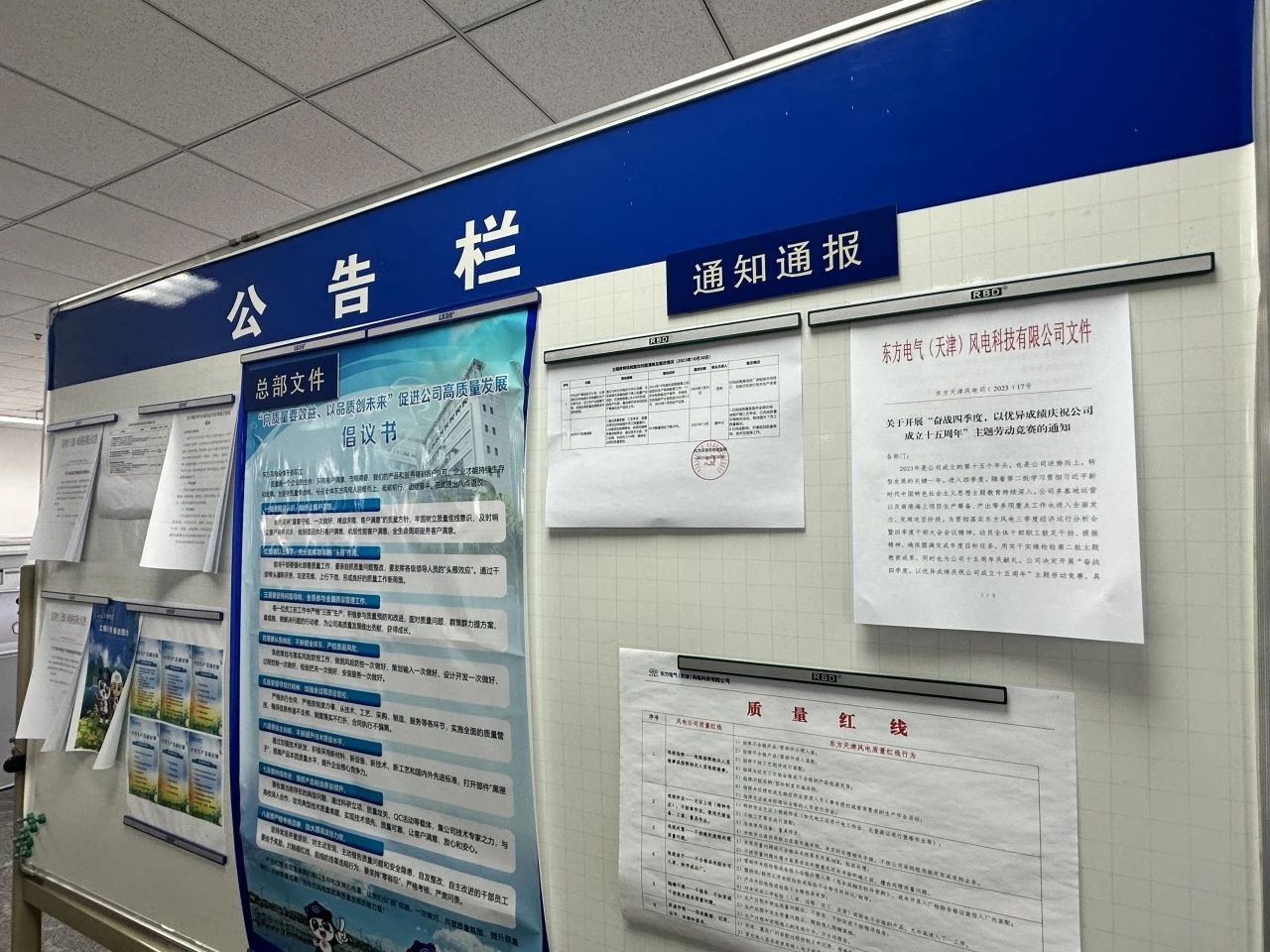 图|东方天津风电在公司通告栏向全体职工果真检视整改情况