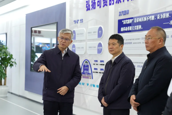 座谈前,游勇、王成平一行旅行了jdb电子平台科技展示厅,深入了解jdb电子平台集团生长历程、科技立异、工业生长等情况。